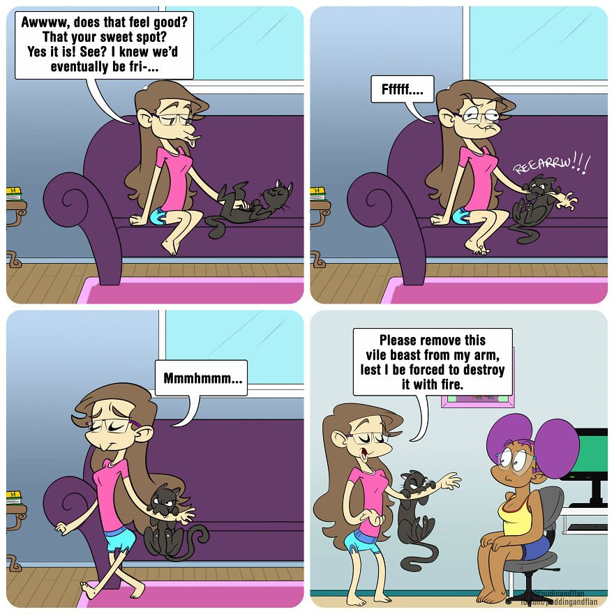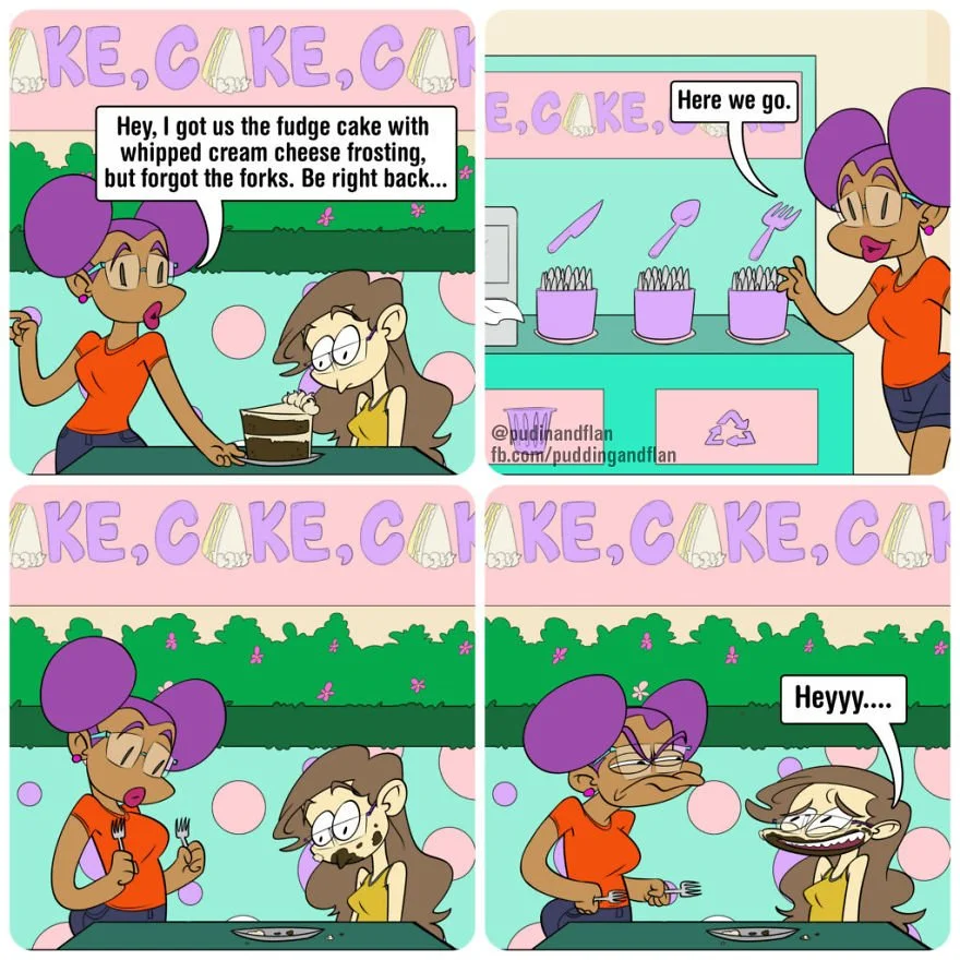 Pudin & Flan is a long-standing comic series that I was responsible for illustrating. I primarily drew and composed the panels, and the story and color were often handled by Destinee Cleveland and Jackie King. The full catalogue can be found at Pudin and Flan | WEBTOON